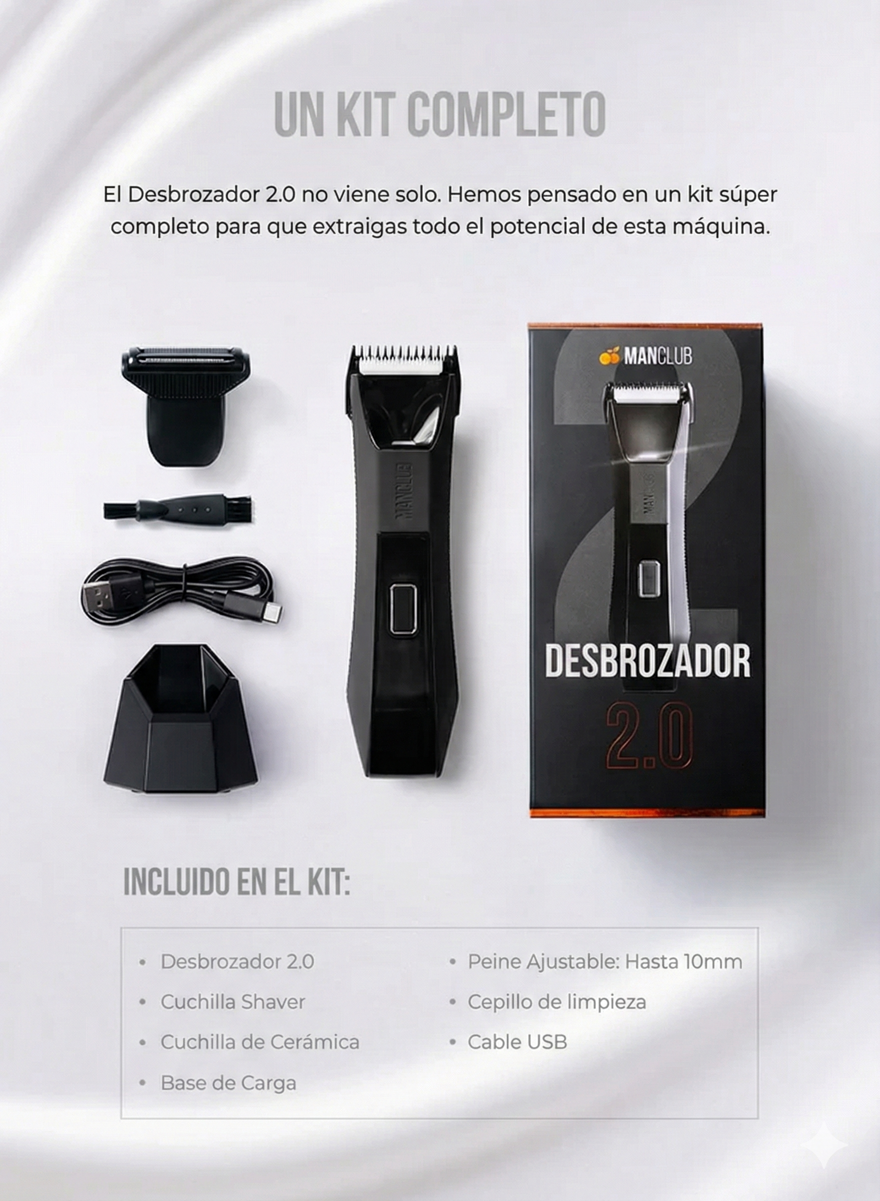 Ya sea para recortar las joyas del rey o el resto del cuerpo, el DESBROZADOR 2.0 es la mejor herramienta que existe. ¿Por qué? Porque ManClub sabe que mereces lo mejor: